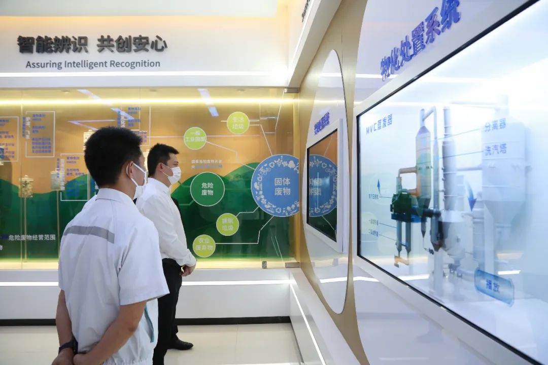 陳小沐一行通過(guò)參觀環(huán)??破照箯d了解到環(huán)保技術(shù)公司的發(fā)展歷程以及危險(xiǎn)廢物處理處置的工藝流程,并實(shí)地調(diào)研公司焚燒、物化終端處置系統(tǒng),對(duì)“國(guó)內(nèi)領(lǐng)先,優(yōu)于歐標(biāo)”的生產(chǎn)工藝技術(shù)表示充分肯定。