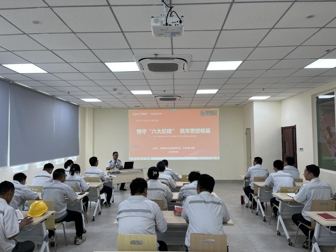 為強(qiáng)化黨紀(jì)學(xué)習(xí)教育,提升黨員政治素養(yǎng)和紀(jì)律意識(shí),7月25日,環(huán)保技術(shù)公司黨支部開(kāi)展《恪守“六大紀(jì)律” 筑牢思想根基》黨紀(jì)學(xué)習(xí)教育專題黨課暨主題黨日活動(dòng)。本次專題黨課由黨支部書(shū)記汪暉主講,公司黨員、科級(jí)以上管理人員近30人參加。