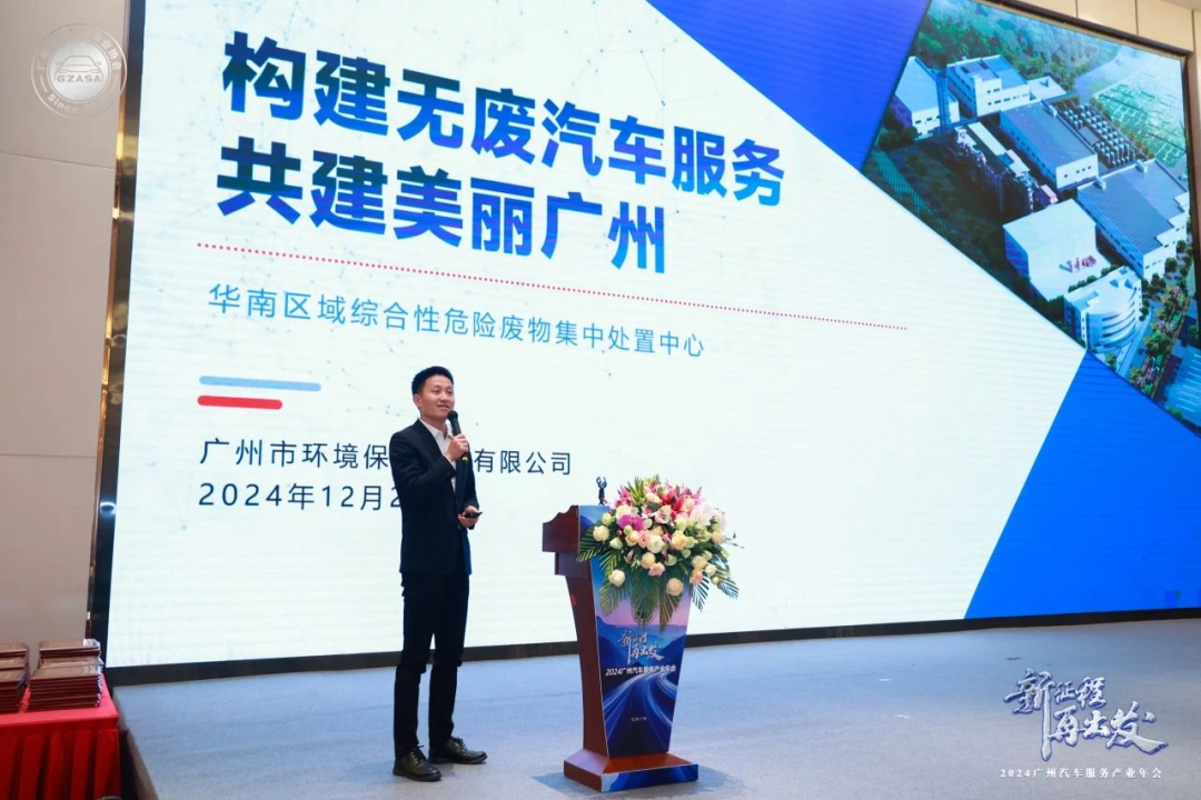 2024年12月24日,廣州市汽車服務業(yè)協(xié)會主辦以“新征程 再出發(fā)”為主題的“2024廣州汽車服務產(chǎn)業(yè)年會”,廣州市商務局、市貿(mào)促會、市工商聯(lián)、市工信局、市公安車管等相關政府部門領導,全國乘用車信息聯(lián)席分會、省市汽車行業(yè)協(xié)會負責人,以及廣州地區(qū)汽車經(jīng)銷集團、汽車經(jīng)銷店、二手車市場及經(jīng)銷企業(yè)、汽車出口、汽車后市場、汽車金融保險等企業(yè)代表齊聚一堂。廣汽商貿(mào)作為廣州市汽車服務業(yè)協(xié)會會長單位,總經(jīng)理李勇應邀出席年會,并攜廣汽商貿(mào)廣州地區(qū)22家成員企業(yè)共同參與。廣州市環(huán)境保護技術有限公司(以下簡稱環(huán)保技術公司)總經(jīng)理彭長武在會上做“構建無廢汽車服務 共建美麗廣州”主題分享,為汽車行業(yè)固廢和環(huán)境管理提出專業(yè)化建議和解讀。