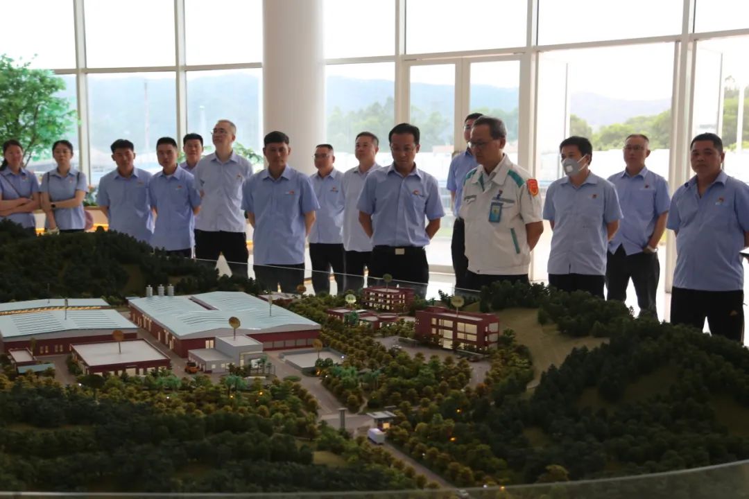 首先,廣船國(guó)際物資部集配課黨支部來到基地環(huán)??破諒d,參觀展廳綠色生態(tài)區(qū)、工藝科普區(qū)、環(huán)保責(zé)任區(qū)及未來展望區(qū),通過沙盤講解、觀看宣傳影片、處置設(shè)施模型互動(dòng)等,詳細(xì)了解處置中心建設(shè)歷程,及危廢焚燒、物化、填埋三大終端處置工藝流程及技術(shù)等。